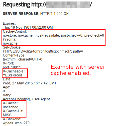 Secondly, the problem could be caused by server-level cache. Check your HTTP headers for cache-related output. Here is a great free tool and below are examples of cached and non-cache domains. If you see the term cache, it is enabled somewhere. If you have not specifically set this up, please contact your web host for assistance tracking it down.