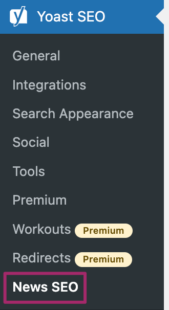 To set up News SEO, go to the admin dashboard of your website and click SEO -> News SEO.