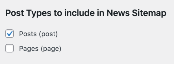 News SEO will list all post types you have on your website, so you can pick which ones should be included in the News Sitemap. You should only pick the post types that actually contain your news.
