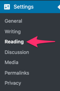 The ‘Settings’ section will expand providing you with additional options. Click on ‘Reading’.