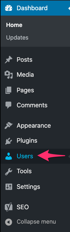 On the left-hand site, you will see a menu. In that menu, click on ‘Users’.