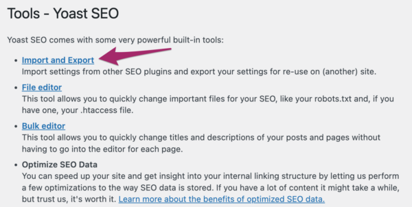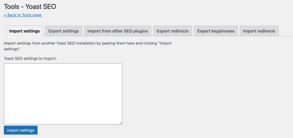 Yoast SEO Tools: Import and export