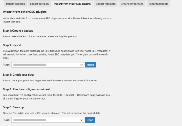 Import from other SEO plugins