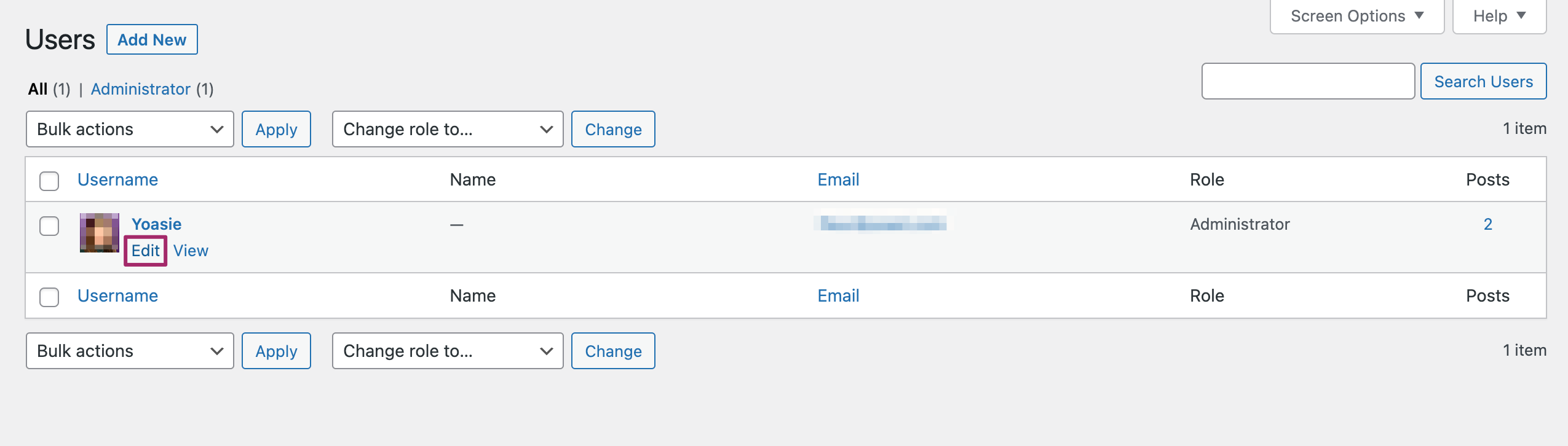 If you have chosen ‘Person’ in the Site representation settings, you can set the social profiles in the profile of the user that represents the person your website is about by following the steps below.