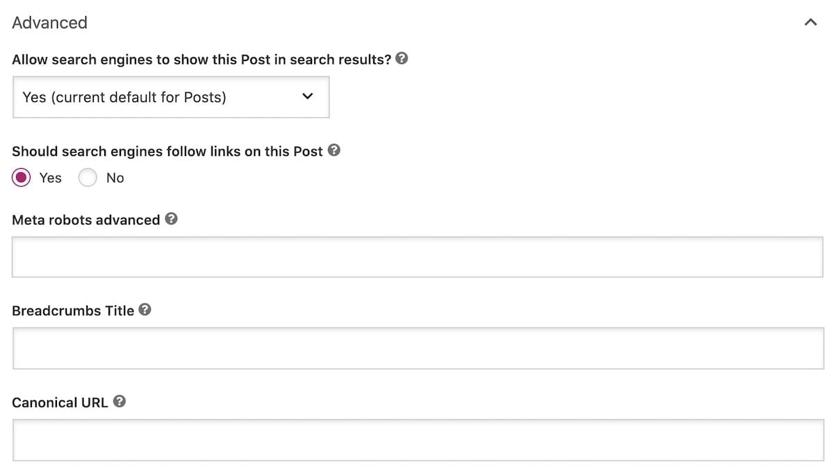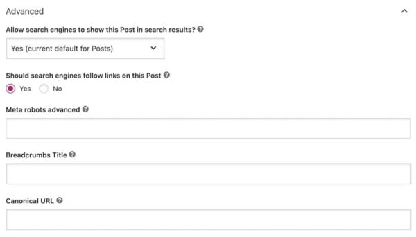 To nofollow or noindex individual posts or pages, head to the Advanced tab of the Yoast SEO Meta box. Again, here, all you need to do is select a few radio buttons, and you are good to go!