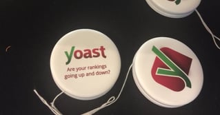 Yo-yo-yoast! Are your rankings going up and down? With that idea in mind, we created these yo-yos. We brought them to several WordCamps all over the world, for example, WordCamp Orlando in 2015. [2015]