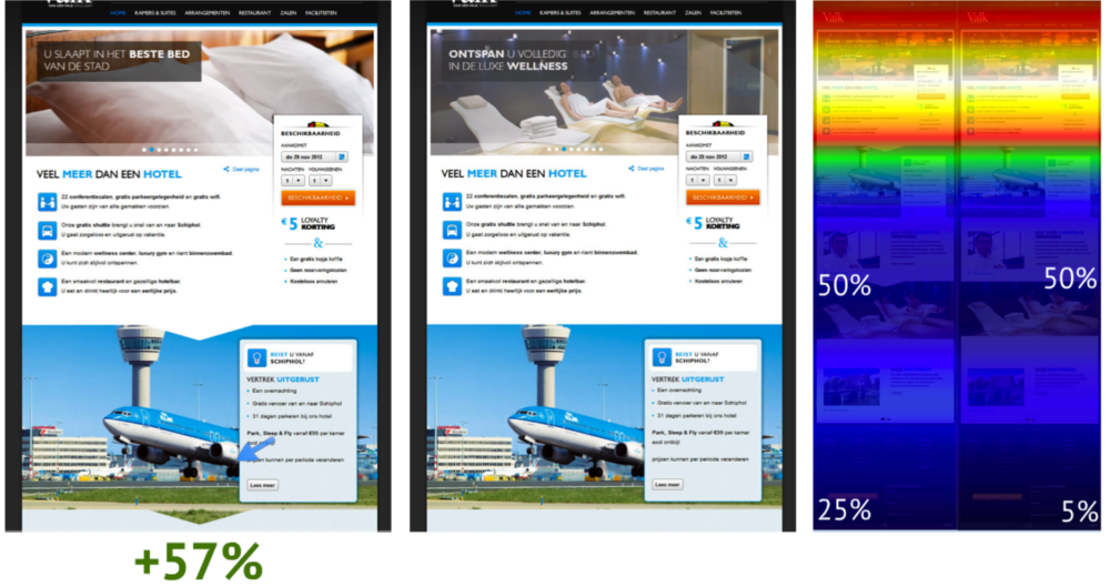 So adding those simple triangles in the images resulted in a huge increase in people scrolling down to the bottom of the page. But even more amazing: they had a 57% increase in conversion. So this already shows that keeping and directing your visitor’s visual attention pays off. Obviously, this is a process that every parallax website should be taking advantage of!