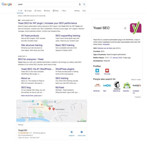 On-SERP SEO also means improving the findability of your images and video. For your main keyphrases, your visual content needs to come out on top. Don’t have visual content pop up on image search for your brand or keyphrases? Don’t have videos? Well, you know what to do if you want to fully occupy the SERPs. The Yoast Video SEO add-on helps you get those videos in search.