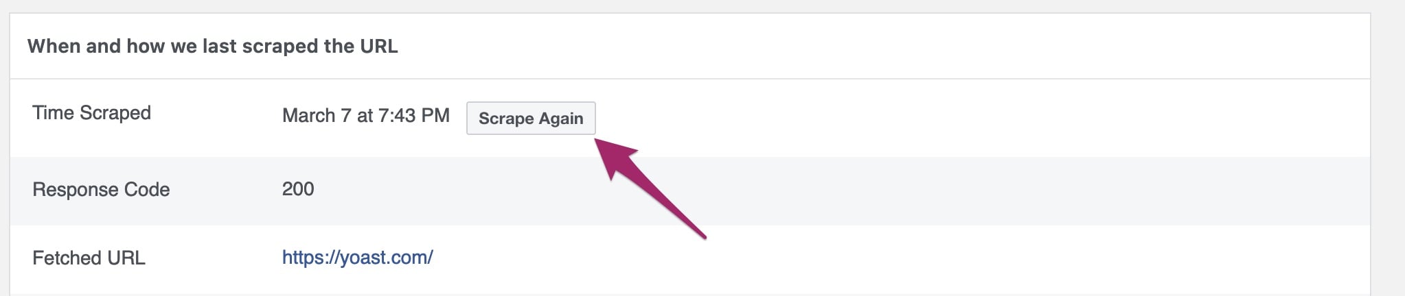 Under ‘When and how we last scraped the URL”, click ‘Scrape Again’.