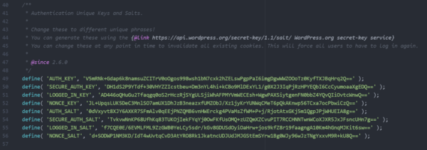 Your wp-config.php file has a dedicated area where you can provide ‘Authentication keys’ and ‘salts’. These are a set of random values, which are unique to your website. They’re used by WordPress to encrypt any information stored in cookies, which makes it harder for attackers to sneak in by pretending to be an authenticated user.