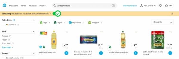 Dutch online grocer Albert Heijn informs customers about the shortage of sunflower oil