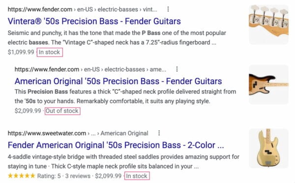 We’ve mentioned it countless times, but Schema structured data is essential in this day and age. For ecommerce sites, that might be even more important than that. With product Schema, you can directly communicate with search engines to describe your products in detail — including various statuses on the availability.