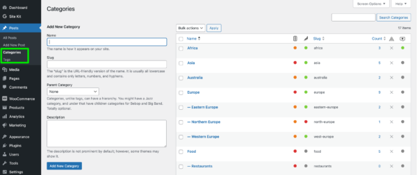 You can navigate to the AI generator when you go to “Posts” in the WordPress sidebar. Here, click on “Categories” or “Tags”.
