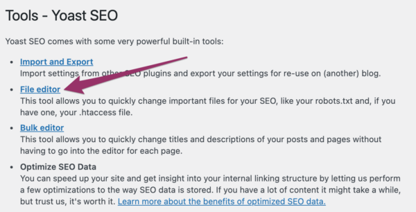 - In the admin menu, go to Yoast SEO > Tools.