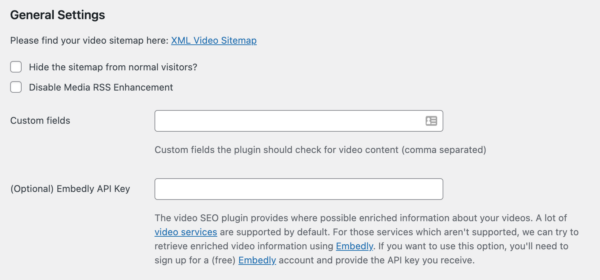 This section allows you to customize the plugin so it only scans items that contain videos when building the video sitemap. This does not affect other sitemaps.