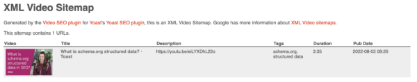 If you publish the post, you’ll also notice that the plugin has added the video to your XML Video sitemap.