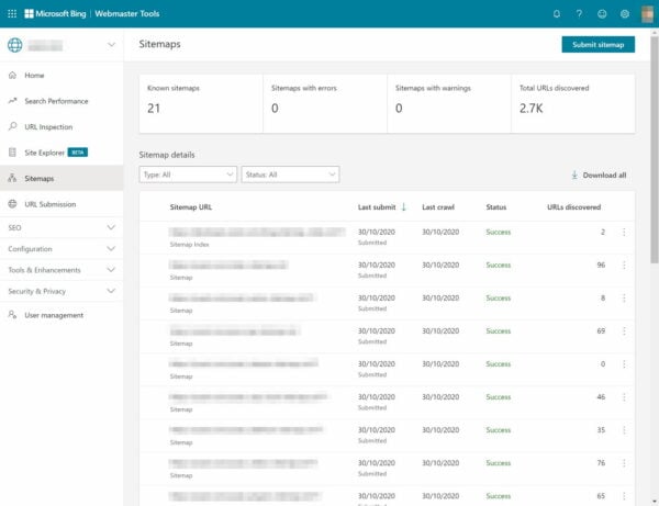 Submitting and managing XML sitemaps in Bing Webmaster Tools