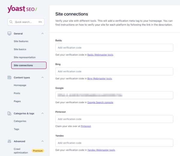 Verifying domain ownership by adding an HTML meta tag to Yoast SEO