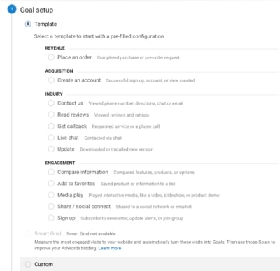 The options you can choose from speak for themselves as they come with examples of the sort of goals. You can also set up a custom goal, which sounds scarier than it actually is. Just try it ;-)