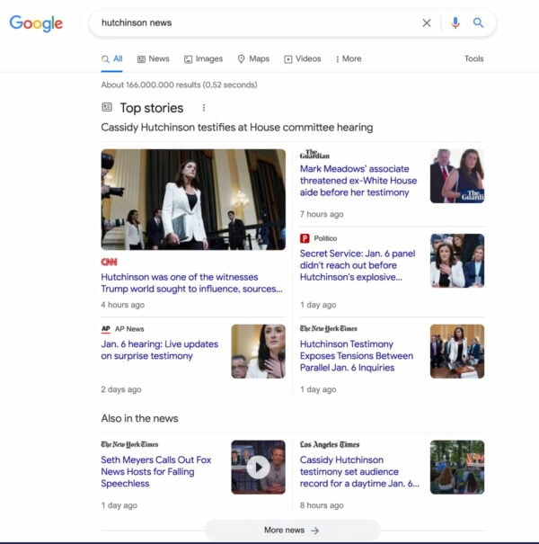 Good to know: when Google detects someone typed a news-oriented search query in their search bar, they can also show Top stories in the usual search results on desktop or mobile in a card-like design.