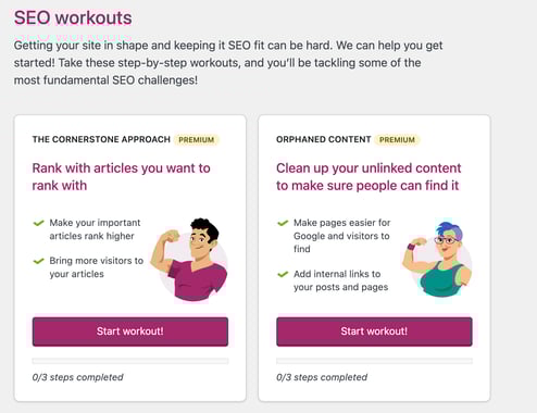 Last but not least, we want to highlight our orphaned content workout. Yoast SEO Premium comes with a few actionable SEO workouts and this one shows all of your content that doesn’t have any links pointing towards it.