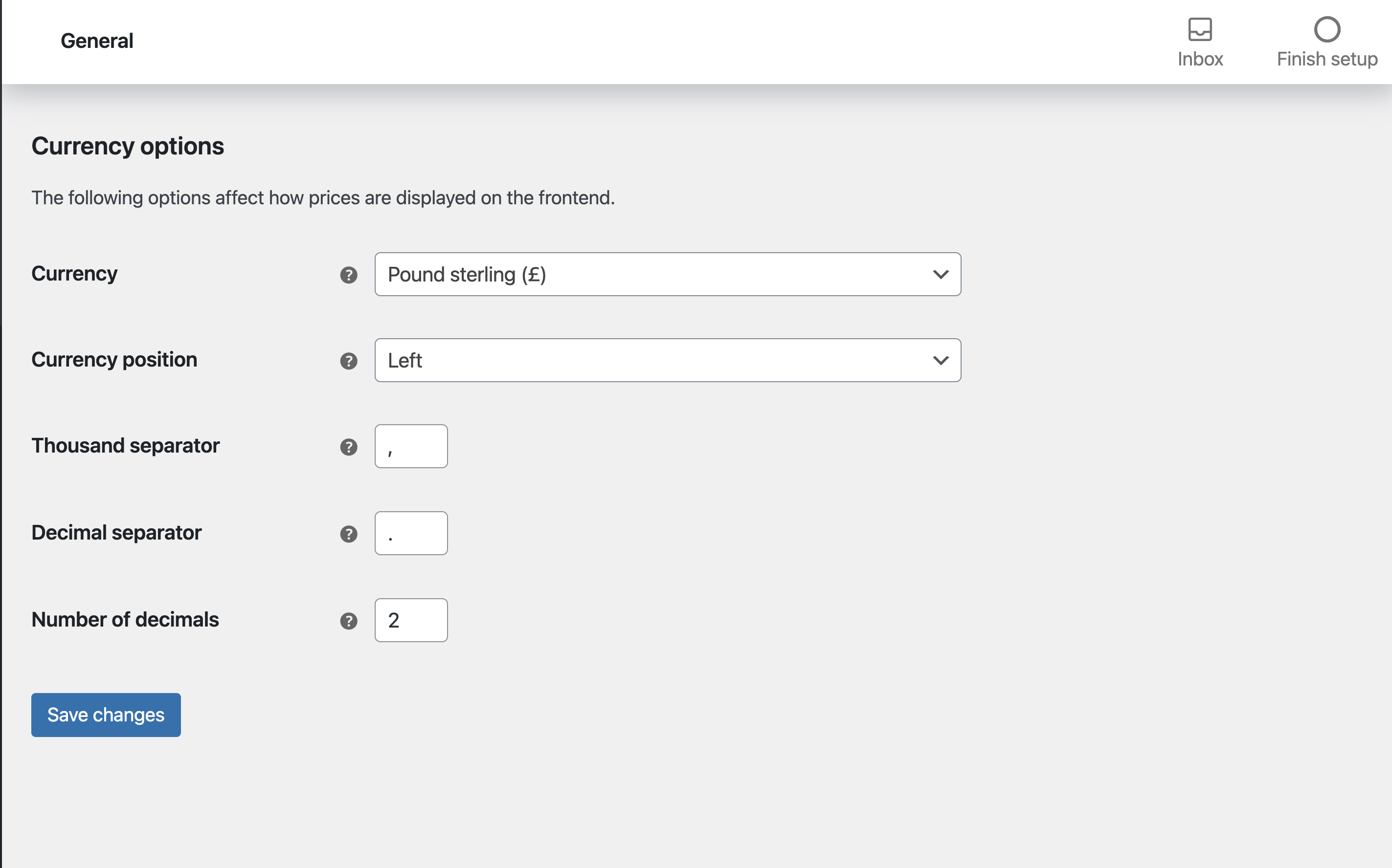 - In the General tab, scroll all the way down to the Currency options and set the correct currency.
