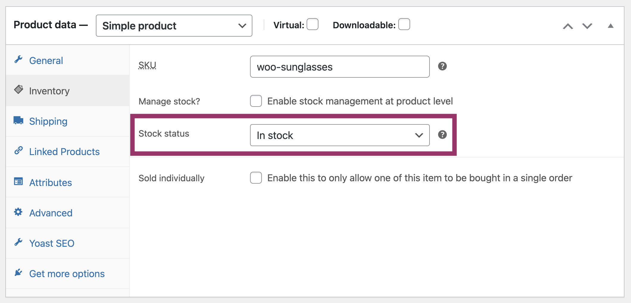 Yoast WooCommerce SEO automatically adds the correct offers Schema to your products. However, you need to provide the correct information in the WooCommerce settings. More precisely, you will need to add information about the price and the availability of your products. To add the required information to a product, follow these steps.