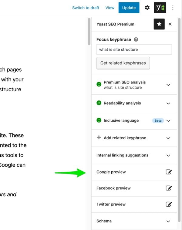 Click the Yoast SEO icon to open the Yoast SEO sidebar.