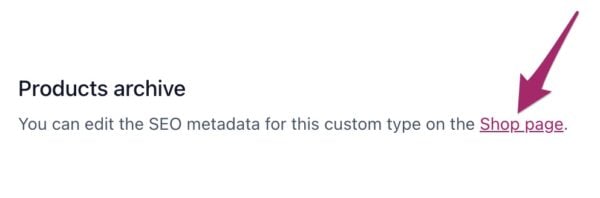 Scroll down to the bottom of the page. Below the heading ‘Products archive’, you will see the link ‘Shop page’. Click the link to edit your shop page.