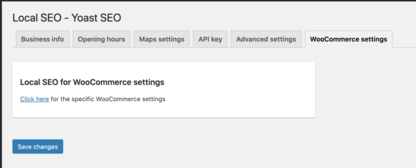 When you use WooCommerce together with the Local SEO plugin, you will see an additional WooCommerce settings tab in the Local SEO settings screen.