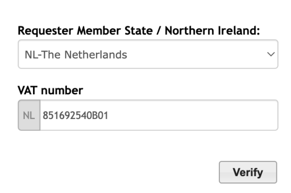 In our checkout process, we immediately validate your VAT number. To do so, we use the VIES VAT number validation API.