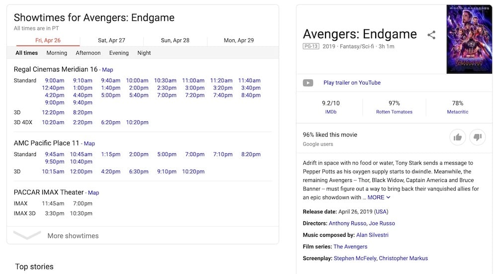 In recent years, content presented by the Knowledge Graph has become much more interactive. Google likes to experiment with the graph, what it shows and how it’s presented. At first, it featured only static content, like images, social media profiles, and general information about the search. Today, it is continually expanding in possibilities. If you search for a movie, you can directly book tickets to see it at your local cinema. Search for a local store, and you know exactly when the busiest times are. And on mobile, the rich results are even richer!
