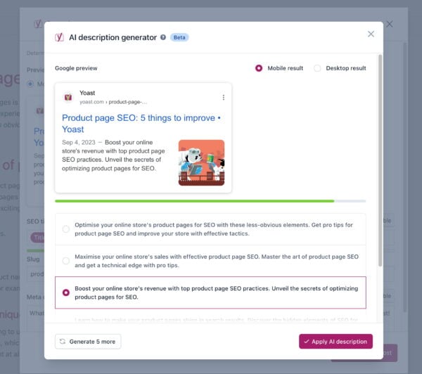 Creating meta descriptions with a little help from generative AI in Yoast SEO Premium