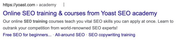 This search result from a Yoast SEO user shows a succinct meta description in Google