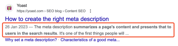 The meta description summarizes a page’s content and presents it to users in the search results. It’s one of the first things people will likely see when searching for something, so optimizing it is crucial for SEO. It’s your chance to persuade users to click on your result! This post will show you the characteristics of a good meta description and how Yoast SEO can help you get it right.