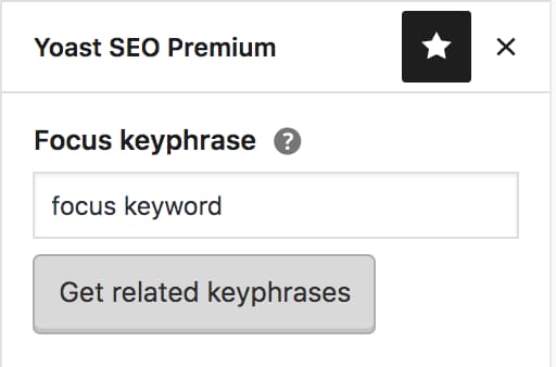 You’ll find the ‘Get related keyphrase’ button in the Yoast SEO for WordPress sidebar