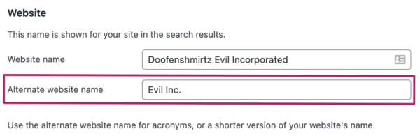 Providing both a website name and an alternate website name means you’re painting a more complete picture of your business. Google might show either your website name or your alternate website name in the search results, depending on the query and the length of your site’s name.