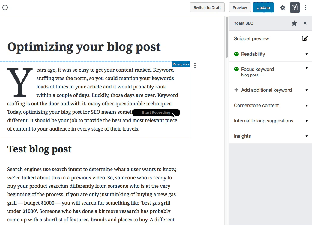 We’ve been heavily investing in Gutenberg since the beginning. We have several developers that are helping to improve the new WordPress editor full time. Also, we have been actively researching how, why and where we should integrate Yoast SEO inside Gutenberg. Even for us, the possibilities are endless. We won’t be able to build everything we’re dreaming of right away, as we’re focusing on giving you the best possible basic integration first — which we introduced in Yoast SEO 8.0 and further improved in Yoast SEO 8.1. We even built our first Gutenberg content blocks for automatically adding how-to and FAQ structured data. Keep in mind, there is a lot more to come from us!