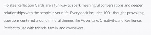 For some products, it makes sense to break up the product descriptions into a short introductory one and a longer one further down the page. This is what Holstee does on its Shopify store. The paragraph above gives you a good sense of what this product is about, what it does, and how you can use it. Please scroll down on the page to see a lot more background about how the product came to be, how to best use it, and a lot more. If you add more relevant content to your product descriptions, you might have a bigger chance of ranking for those.