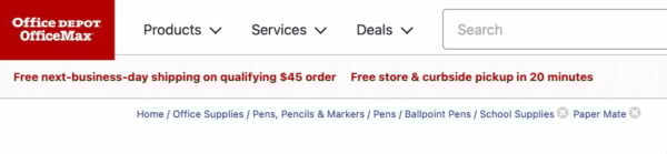 Office Depot shows every selection in the breadcrumbs