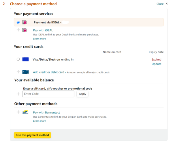 Amazon chooses to place the coupon code section in the payment overview step