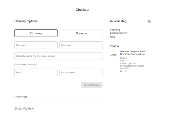 Nike’s checkout page is clean and simple