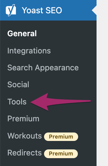The ‘Yoast SEO’ settings will expand providing you with additional options. Click on ‘Tools’.