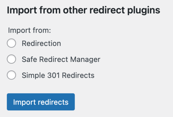 Yoast SEO Premium allows you to import from supported redirect plugins, from a CSV file, or from a .htaccess file.