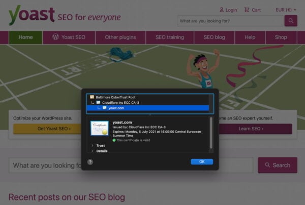 HTTPS secures the connection to the website you are visiting. I’m sure you have seen this in action; look at the address bar in the browser and find the lock icon on the left-hand side. Is the lock closed? Then the connection is secure. Is it open, or is there another type of icon or message? Then it’s not secure and vulnerable to attack. Using a site over a non-secure connection means hackers/criminals could intercept the data you send to the site, like your password and email address. Here, I’ll explain what HTTPS is and why it plays a role in (technical) SEO.