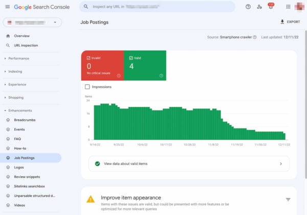 Here’s an example of a job posting enhancement. You can overlay Impressions to get more context for the stats
