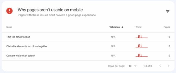 The mobile usability tab in the Experience section shows you usability issues with your website or specific mobile pages. Since mobile traffic is rising worldwide, we recommend checking this regularly. If your mobile site isn’t user-friendly, many visitors will leave it quickly.