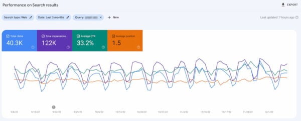 The last one on this list is the ‘Average position’. This tells you the average ranking of a specific keyword or page in the time period you’ve selected. Of course, this position isn’t always reliable since more and more people seem to get different search results. Google seems to understand better and better which results fit best for which visitor. However, this indicator still shows whether the clicks, impressions, and average CTR are explainable.