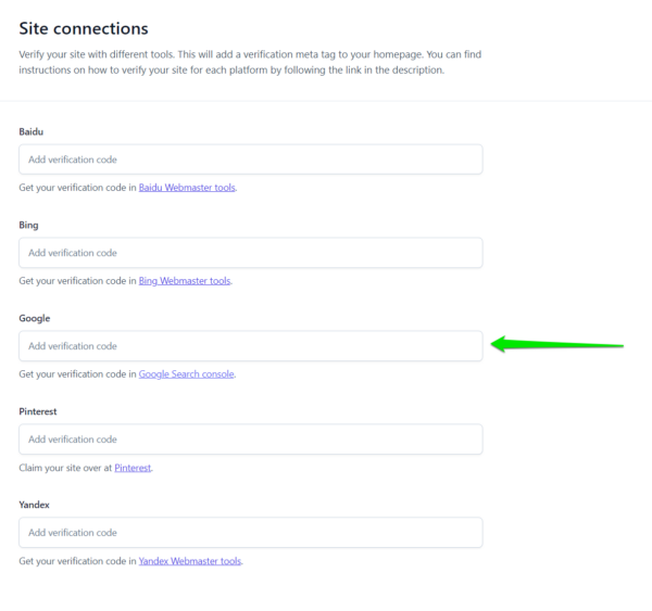 You can easily copy this code and paste it into the Google field in the ‘Site connections’ section in the settings of your Yoast SEO plugin: