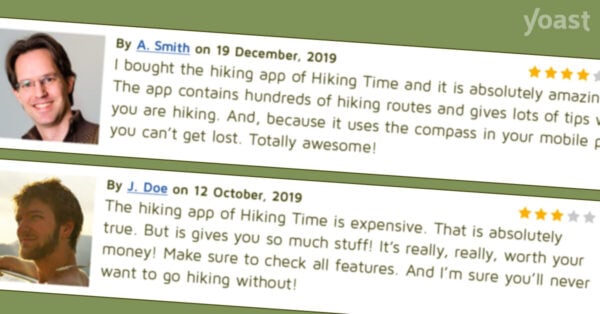 At Yoast, we’ve seen a lot of websites of every caliber. Every website has its own issues, but all websites benefit from optimizing the conversion rate. It really doesn’t matter if your goal is more sales, more Facebook likes or more newsletter subscribers. One thing that helps almost every website is the right use of reviews. A lot of websites do have reviews, but just having them simply isn’t enough.